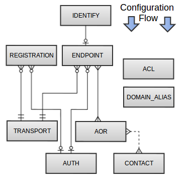 ## 在 pjsip.conf 中配置以下 3 个对象(相同名称,type 不同):