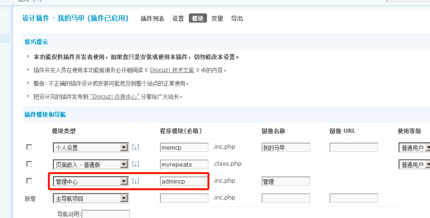 5. 插件执行控制核心入口 .inc.php¶