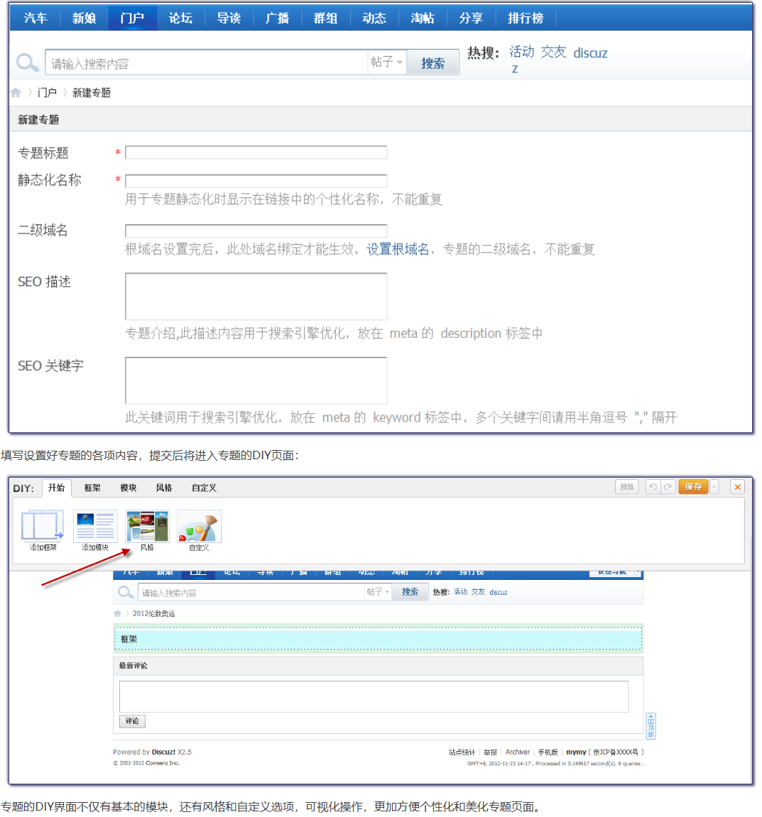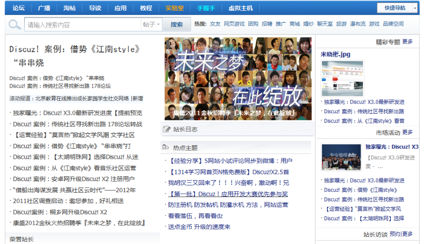 - 站长可以用“门户”制作一个简单的社区首页,也可以制作成类似于门户网站那样丰富的首页。