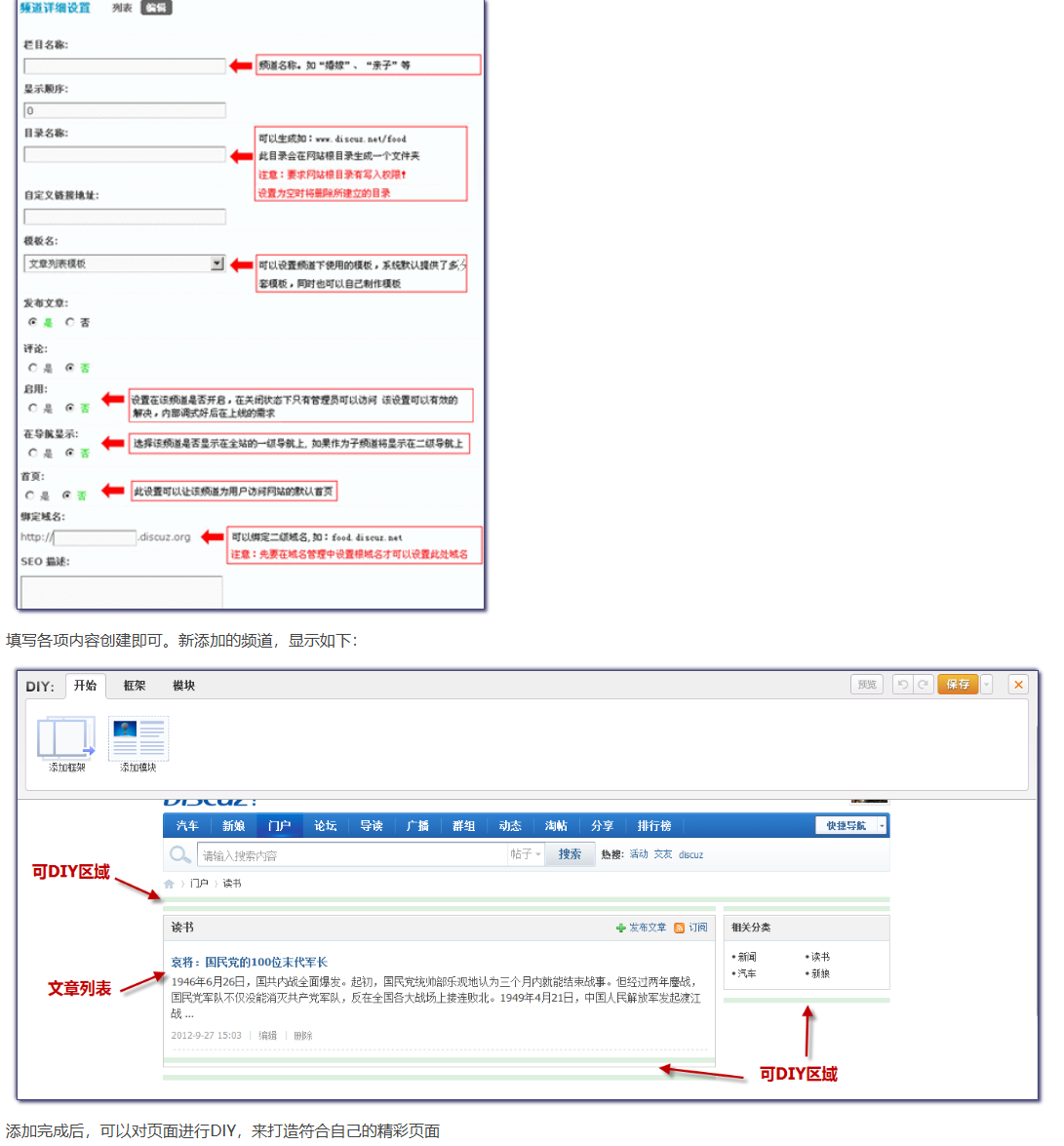 - 频道栏目,需要管理员在后台创建,点击