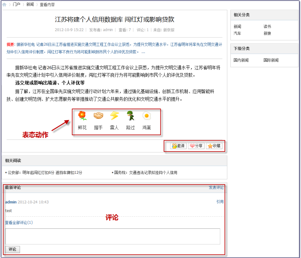 - 在门户应用下,包括**资讯、专题与频道**三大版块