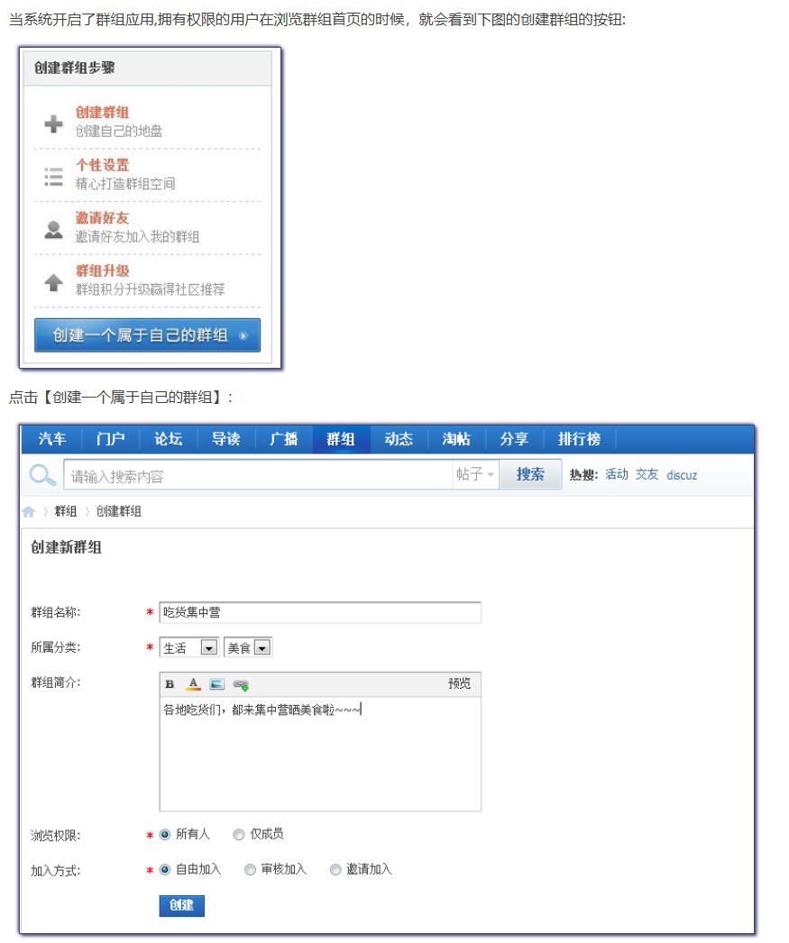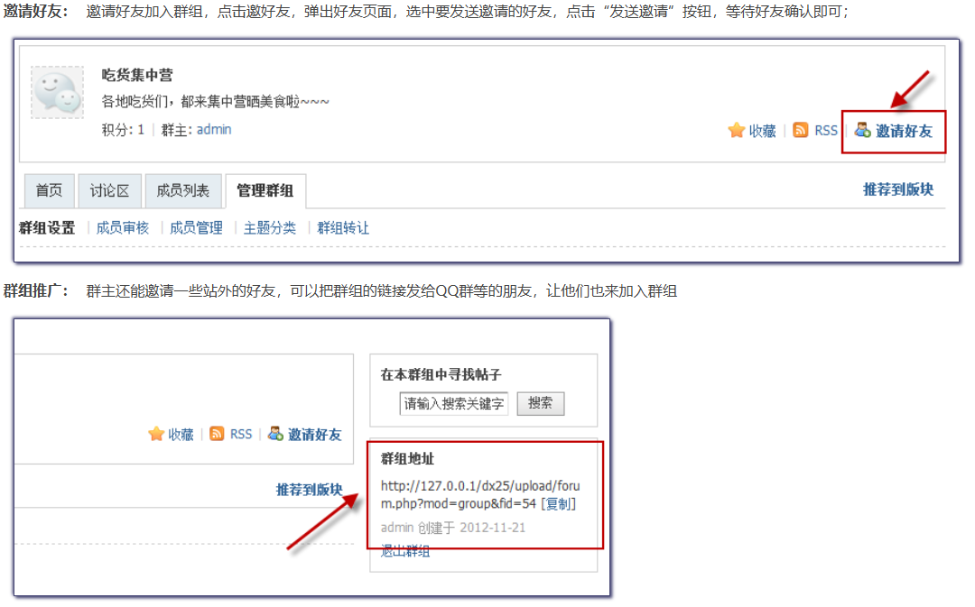 - 群组功能可以把有共同话题的人聚集在一起,站长可以利用群组功能打造许多细分、垂直的群组,满足不同用户需求,像车友会、影迷会等。
