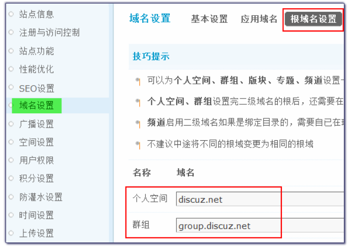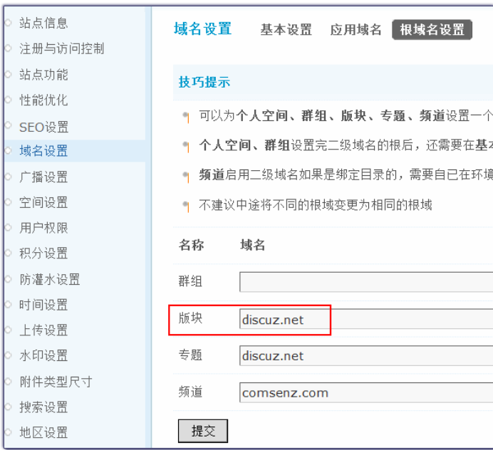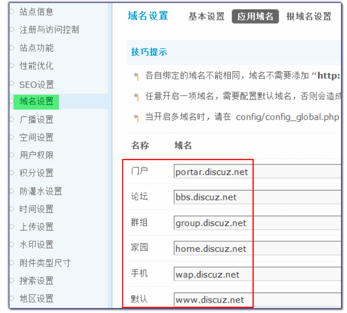 1. 门户、论坛、群组、家园、手机的域名如何绑定